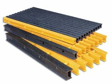 GRP Pultruded Gratings provides an efficient and cost-effective solution for all flooring, walkways and decking areas requiring long term performance in very aggressive and corrosive environments. Combining corrosion resistance, long life and a low-maintenance design, Captrads pultruded grating is superior to conventional metallic gratings. This advanced grating is manufactured with a recessed tie bar configuration and is lightweight and easy to fabricate. Savings on labour and equipment often make the total installed cost of Captrads grating comparable to that of steel. This advanced pultruded grating is designed for use in a wide range of industrial applications that require strength and corrosion resistance. Manufactured with a high percentage of glass within the laminate, pultruded grating provides durability, extremely high unidirectional strength and stiffness. Due to its exceptional stiffness, it can be used with confidence where wide support spans are required. For most applications where it is used to replace steel grating, Captrads industrial grating rarely requires additional supports. With the low cost of installation with low-maintenance and long life, GRP Pultruded Gratings offers a life cycle cost that is significantly lower than that of its metal counterpart. Captrads grp pultruded gratings includes High Load Capacity (HLC) grating for up to H20 vehicular loads, industrial grating for standard industrial loads and pedestrian grating for pedestrian traffic. Specially designed gratings for barefoot traffic in the recreation industry are available. Another pultruded product is our Deck500 interlocking flooring is available to provide transportable solid-top flooring. Overall Captrad has a complete line of pultruded products offering a variety of solutions for most applications.